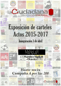 Este martes 3 de abril a las 19:30 horas inauguramos en El Manglar (calle Martínez Vigil, nº 14 de Oviedo) la exposición de carteles de las actividades de nuestra asociación desde 2015 a 2017.
