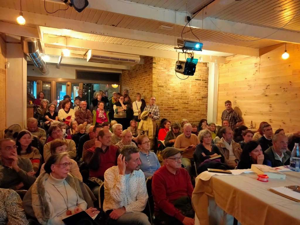 El público abarrotó y desbordó, una vez más, el salón de actos del Manglar, aportando por igual ansias de conocimiento geopolítico y solidaridad con los pueblos del mundo. En este caso, con el pueblo kurdo.