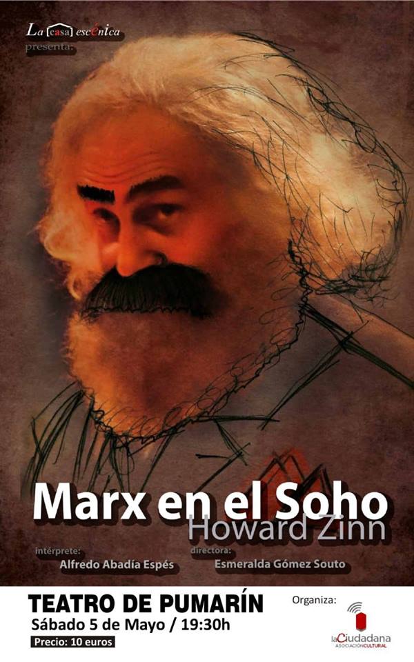 Continuando con las actividades organizadas por La Ciudadana Asociación Cultural para conmemorar el bicentenario (1818-2018) del nacimiento de Karl Marx, tendrá lugar el Sábado 5 de mayo, a las 19:30 horas en el Teatro de Pumarín (Plaza de Los Maestros, Oviedo) la representación de la obra de de teatro “Marx en el Soho”.