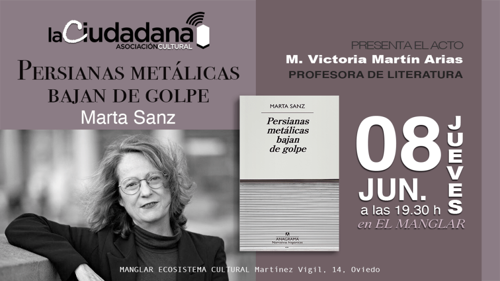 Seguimos con nuestras actividades culturales, presentando la última novela de Marta Sanz, «Persianas metálicas bajan de golpe». Jueves, 8 de junio en El Manglar. Entrada libre hasta completar aforo.
