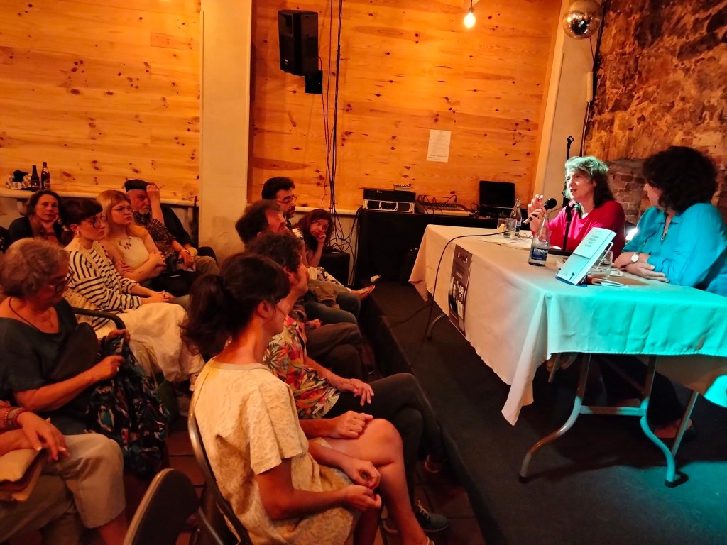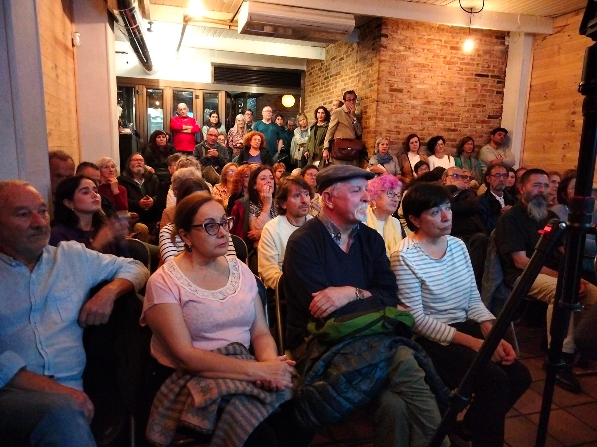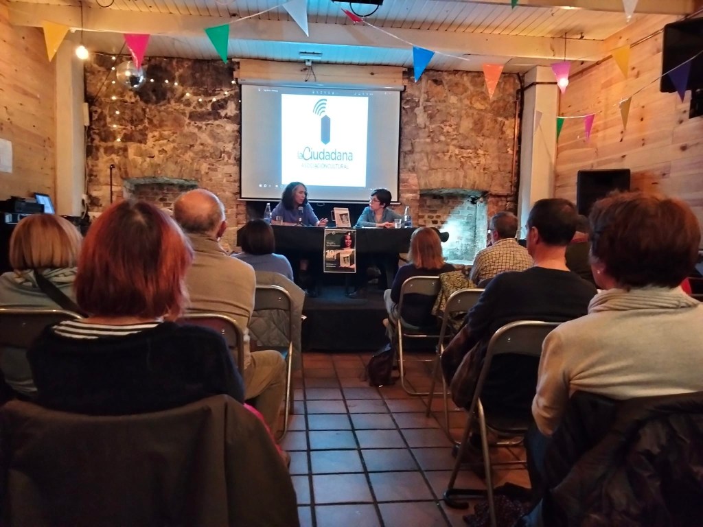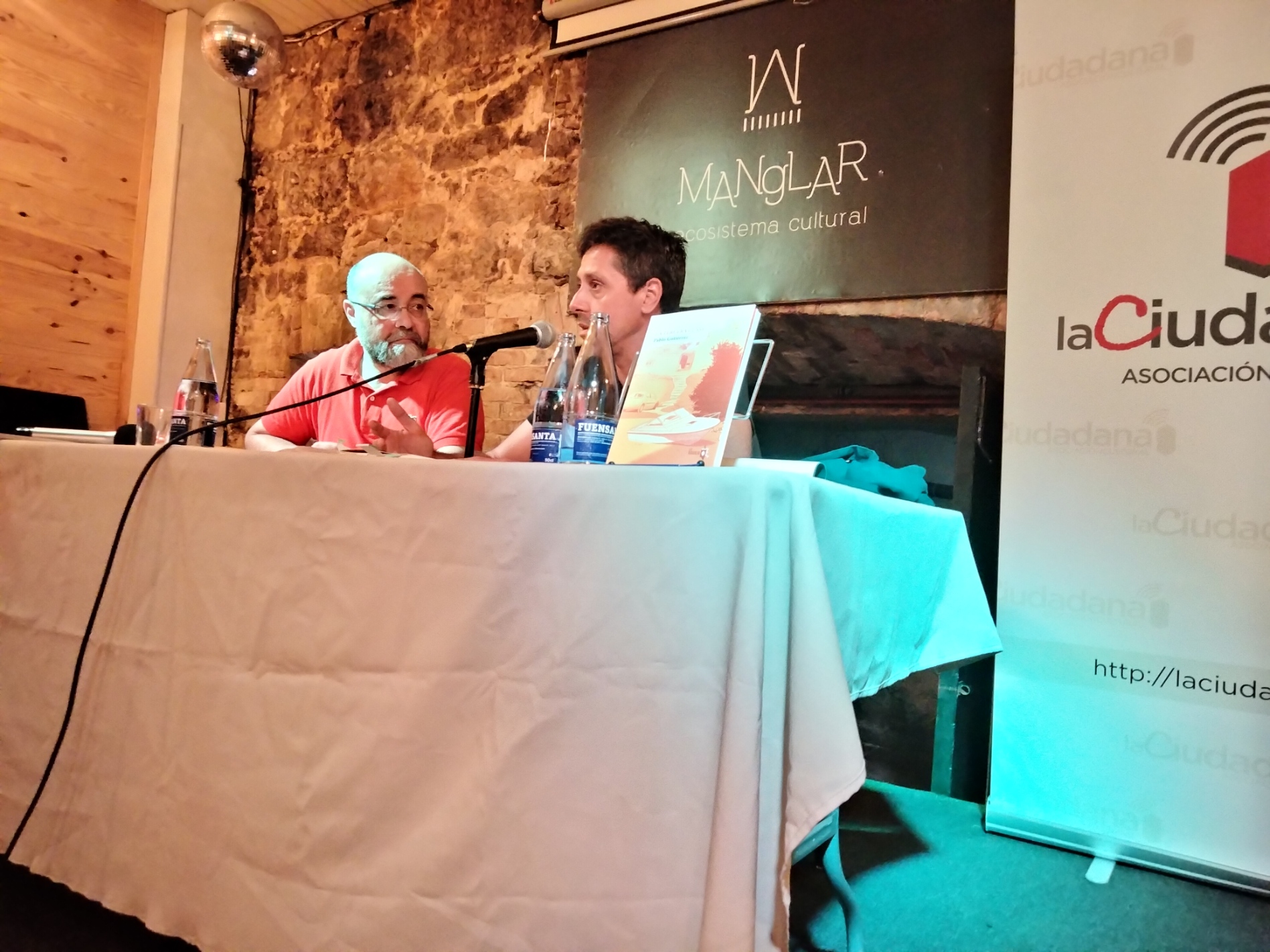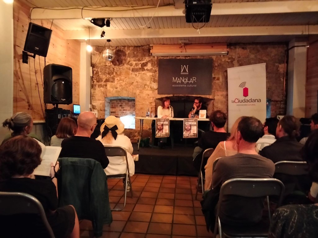 «Persianas metálicas bajan de golpe», último libro de Marta Sanz, sirvió de excusa para una brillantísima disertación de la autora, acompañada en la presentación por la profesora de literatura María Victoria Martín Arias. La pandemia sirvió a Marta como momento de reflexión para unas generaciones que hasta ahora habían transitado más o menos plácidamente su existencia. Y para diseñar para su novela un mundo distópico, no necesariamente mejor, como se llegó a plantear en aquel tiempo, en el que aplaudimos lo público desde nuestros balcones. El capitalismo, voraz, impone sus lógicas en lo cultural, en lo electoral, en lo vital. El público, que llenó El Manglar, celebró las reflexiones con un largo aplauso y Marta se adscribió a la nómina de autores/as de cabecera de La Ciudadana, Asociación Cultural.