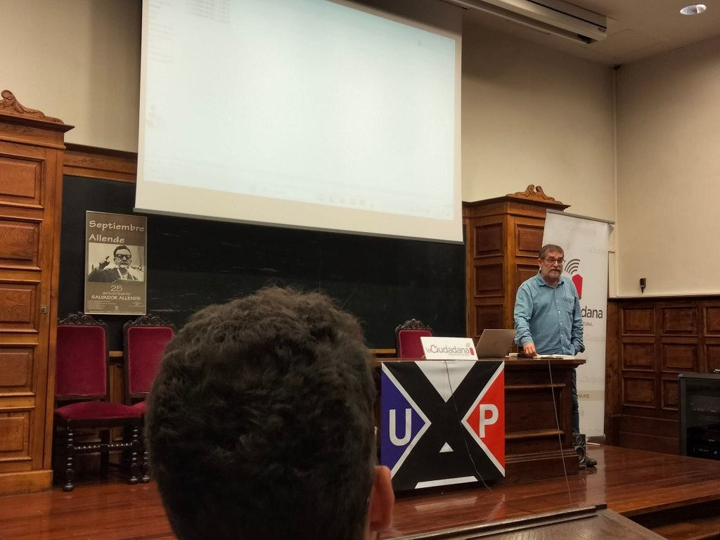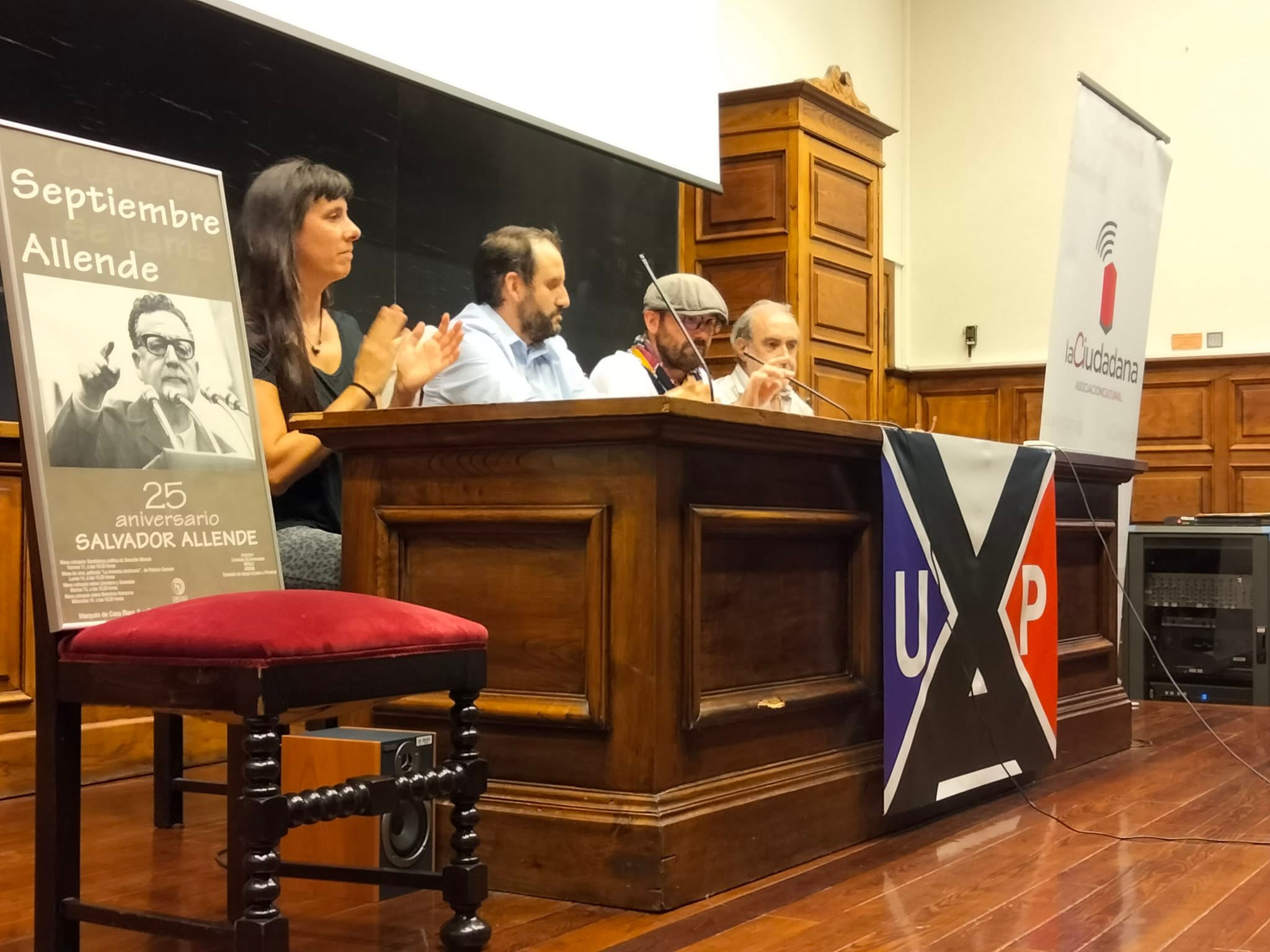 Las jornadas «Chile:50 años» concluyeron ayer martes con una interesante y emotiva exposición de los historiadores Francisco Erice, Lisandro Cañón y Francisco Javier Morales y Amaia Caunedo, bien nutrida de público (entre ellos, algún superviviente al golpe de 1973) en el Aula Escalonada de la Universidad de Oviedo. El concierto final, con SilVidos y Gemidos , Héctor Tuya, Nacho Loy y Alfredo González, emocionó y divirtió a un Manglar abarrotado y fue un magnífico colofón con canciones de Víctor Jara, Violeta Parra, Quilapayún, Horacio Guaraní, Silvio Rodriguez , Pablo Milanés – Oficial , Viglietti, Labordeta o Ismael Serrano . Salvador Allende estuvo presidiendo estas jornadas en todo momento.