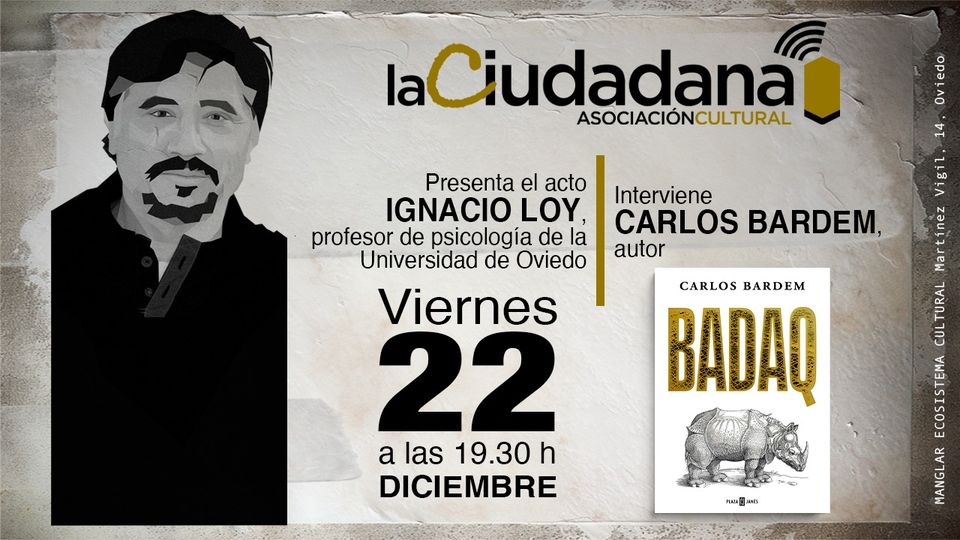 Carlos Bardem y su rinoceronta Badaq visitaron Asturias de la mano de las asociaciones culturales asturianas. Os dejamos algunas fotos de la presentación de ayer, con numeroso público que desbordó una vez más El Manglar, en lo que fue la última de las actividades de La Ciudadana, Asociación Cultural durante este año 2023. Se habló de la descompensada relación del hombre con la naturaleza, se cuestionó la relación del ser humano con otros seres de su misma especie, criticando la visión histórica del imperialismo español y sus procesos de colonización, de feminismo y de tantas otras cosas con las que el mayor de los hermanos Bardem pretende interpelar a las y los lectores de sus libros. No nos tocó la lotería, pero ayer, por un momento, fuimos felices igual. Salud, resistencia y pensamiento crítico.